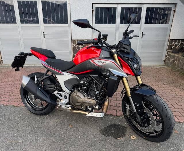 Zbrusu nový naked SRK 600 má velmi kompaktní, agresivní design, který se jen tak neokouká. Na první pohled zaujme krásným lakováním, prémiovými komponenty, zpracováním a hlavně svou jednoduchou, avšak promyšlenou konstrukcí a minimalismem. Tento streetfighter se vyznačuje příjemnou uvolněnou ergonomií se sportovním posezem. Kamkoliv se podíváte, uvidíte jen samé kvalitní komponenty - jmenujme například zlatou upside-down přední vidlici Marzocchi, dvojité přední radiální brzdy Brembo a nebo krásné prošívané sedačky jezdce i spolujezdce. Jeho inovativní konstrukce rámu a motor nové generace s přesazenými ojnicemi o 270 stupňů Vás nenechá na pochybách, že si každou zatáčku, každou akceleraci užijete na maximum a motocykl ve Vás zanechá opravdu příjemný zážitek z jízdy. SRK 600 je street, který Vás okamžitě nadchne!