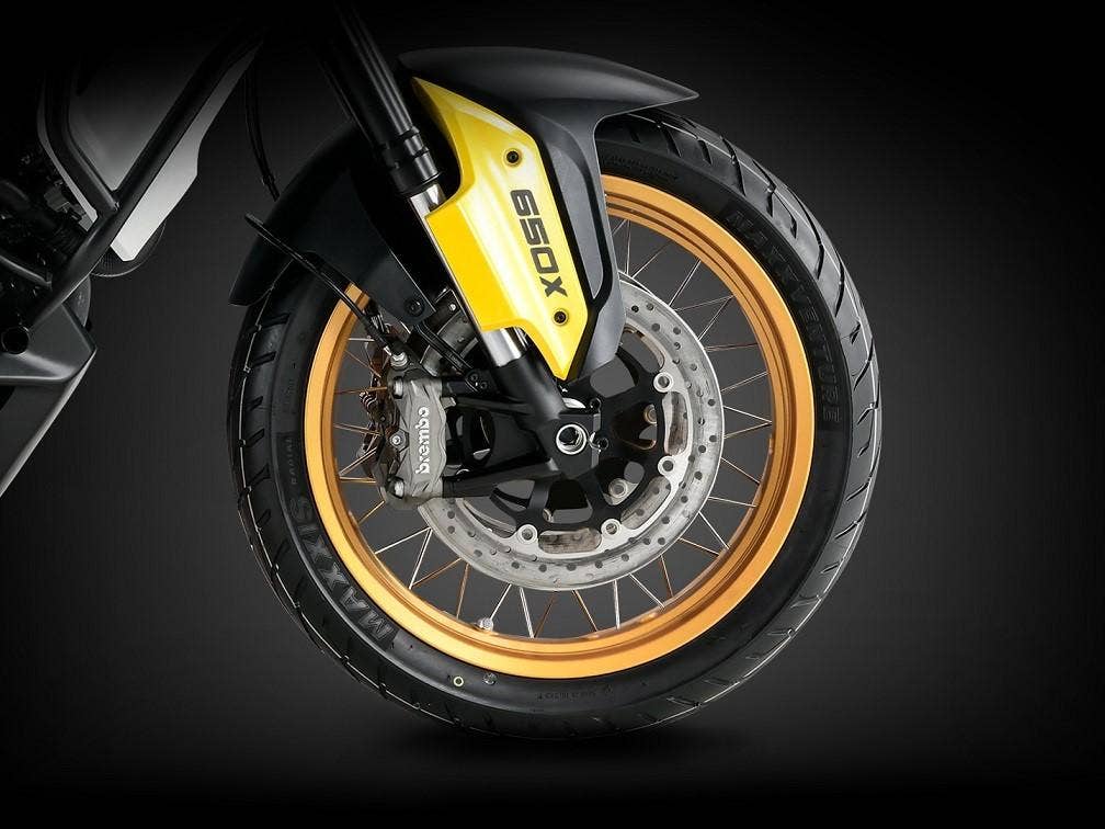Podvozek SVT 650 X nabízí ucelený balíček funkčnosti a bezpečnosti. Brzdy tvoří dva 320 mm kotouče vpředu s radiálními čtyřpístkovými třmeny od firmy Brembo a 260 mm kotouč vzadu s jednopístkovým třmenem, spolupracují se sofistikovaným dvoukanálovým 9,1MB ABS systémem Bosch. 43mm obrácená vidlice nabízí nastavení tlumení předpětí a odskoku a poskytuje 145mm zdvih pro bezproblémovou jízdu v jakémkoliv terénu a komfort při vyšších rychlostech při jízdě po silnicích. Zadní tlumič je nastavitelný z hlediska předpětí pružiny.