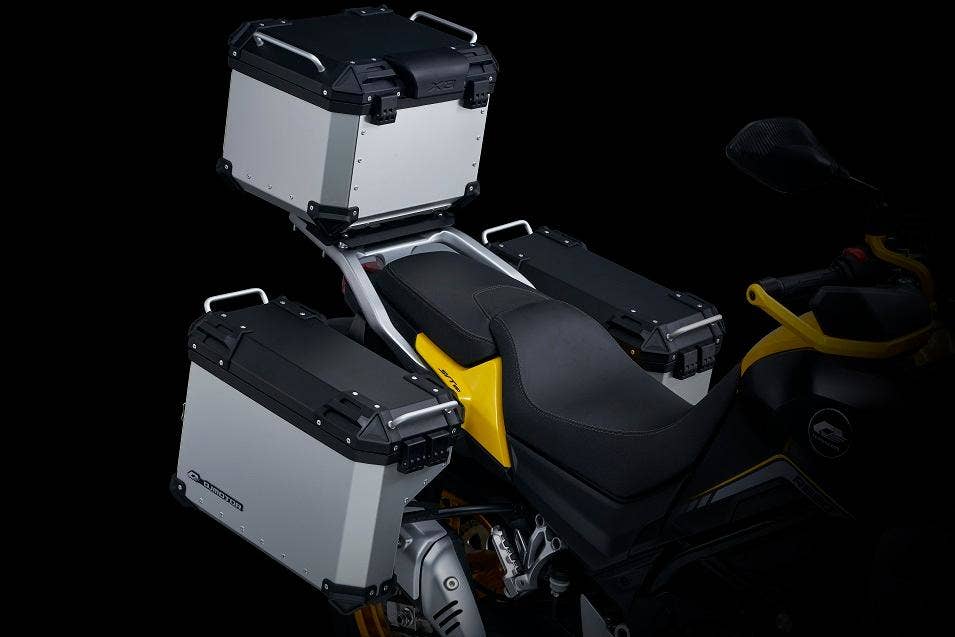 Zažijte Dakar na vlastní kůži s tímto velmi robustním a výkonným adventurem! Jak už je u QJMotor zvykem, tak i SVT 650 koupíte s bohatou cestovní výbavou - jmenujme například vyhřívané gripy, sedadlo řidiče, zesílené originální blástry, USB zásuvku a barevný 7mi placový TFT přístrojový panel s možností propojení s telefonem! To vše skvěle doplňuje parádní véčkový motor, kvalitní podvozek s velkými zdvihy. Samozřejmostí jsou brzdy Brembo a ABS od firmy Bosch.